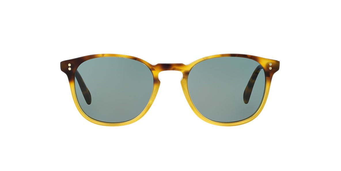 Oliver Peoples round brown acetate sunglasses with indigo photocromatic lenses. Come in a designer-stamped case