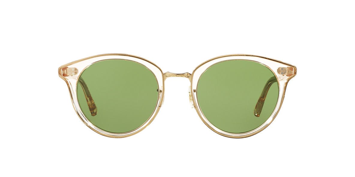 Oliver Peoples phantos honey acetate sunglasses with green lenses. Come in a designer-stamped case.