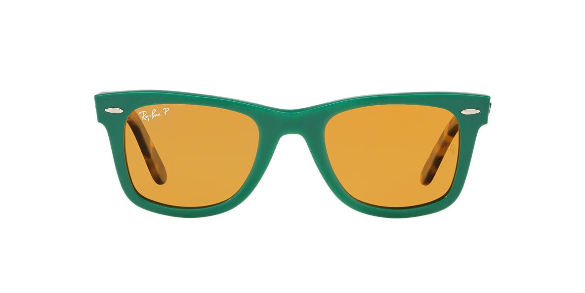 The Ray-Ban® Wayfarer® in size 50mm is simply the most recognizable style in sunglasses. The distinct black shape is paired with the traditional Ray-Ban signature logo on the sculpted temples. After its initial design in 1952, the Ray-Ban Wayfarer quickly endeared itself to Hollywood filmmakers, celebrities,  musicians and artists, solidifying its iconic status for years to come. This classic version comes with a sleek black frame and green glass lenses, offering ultimate clarity and enhanced vision.