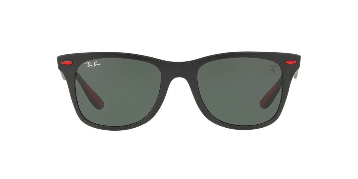 Ray-Ban square black peek sunglasses with dark green lenses. Come in a designer-stamped case.