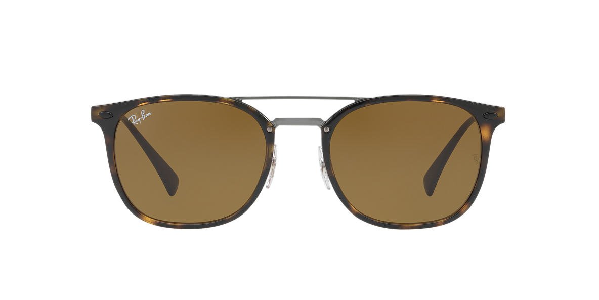 Ray-Ban square havana injected sunglasses with dark brown lenses. Come in a designer-stamped case.